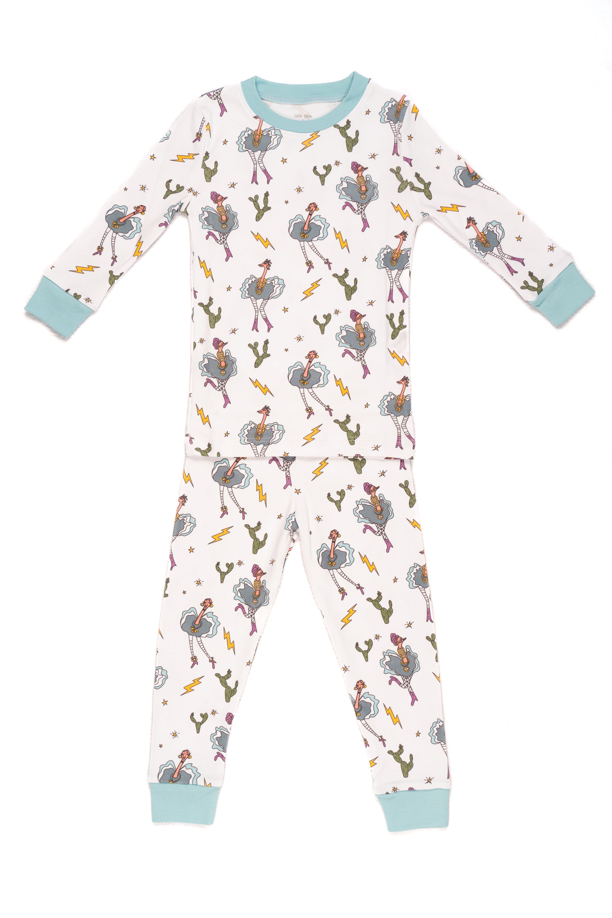 Disco time in the karoo! Just hide your sparkly jewels from those beady eyed Ostriches. Light breathable Pima Cotton. Full length pants and three quarter arm length for balmy summer nights.