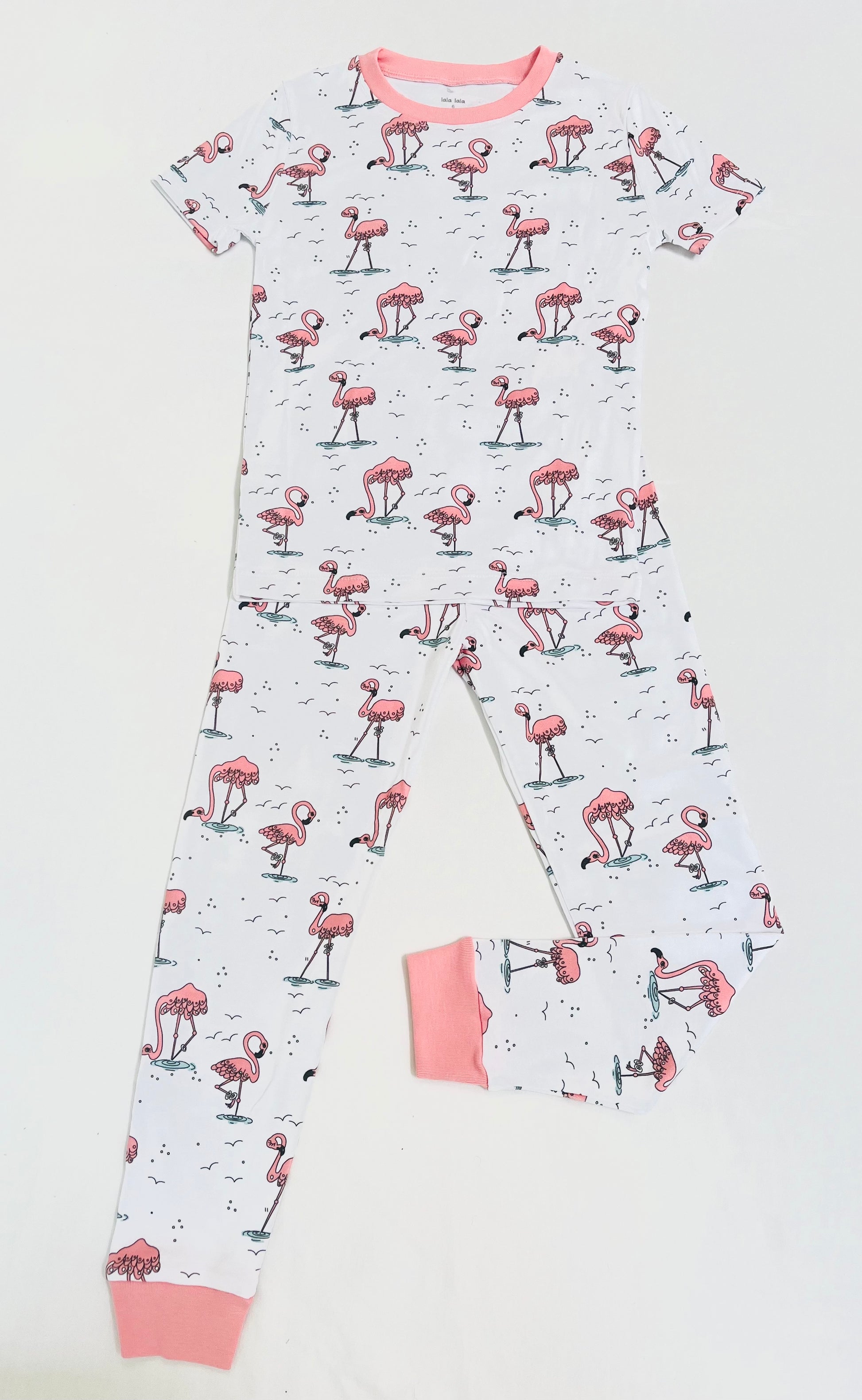 Magical Churchhaven, where the flamingoes roam freely and the lagoon water glistens. Light breathable Pima Cotton. Full length pants and short sleeve arm length for balmy summer nights.